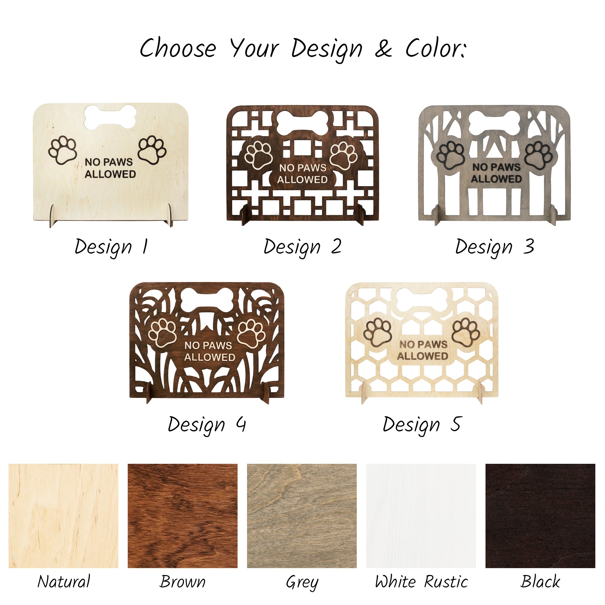- 5 Gate Designs - Gate Colors: Natural | Brown | Grey | White Rustic | Black - Text Colors: Natural | Brown | Black | Gray | White Rustic | Pink